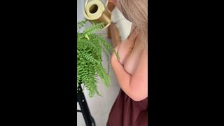 melodicwife: MILF mit einem saftigen Arsch gießt ihre Pflanzen und fantasiert darüber, dass Sie ihre Muschi überfluten.